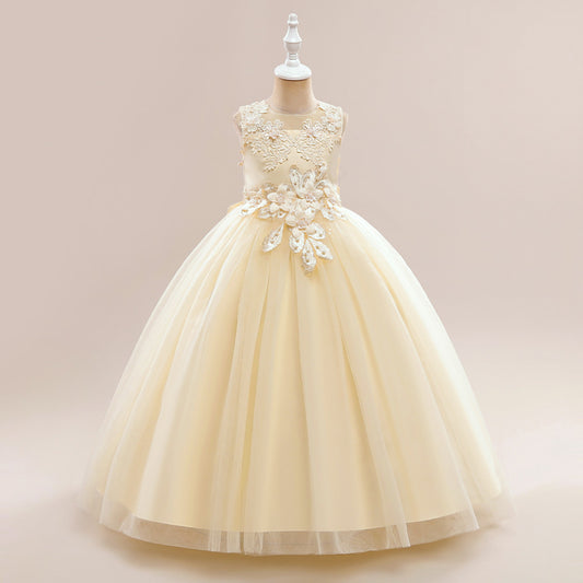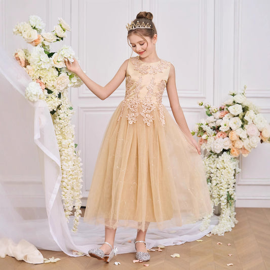 Champagne Embroidered Tulle Ball Gown Dress for Girls