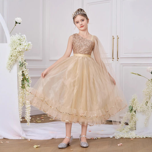 Champagne Sequin A-Line Party Dress for Girls