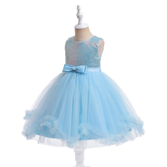 Girls' Sequin Puffy Princess Dress with Bowknot