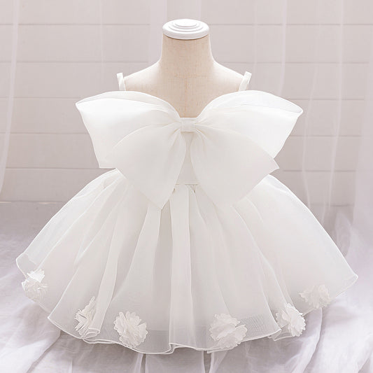 Princess Puff Sleeve Bow Ball Gown Dress for Girls