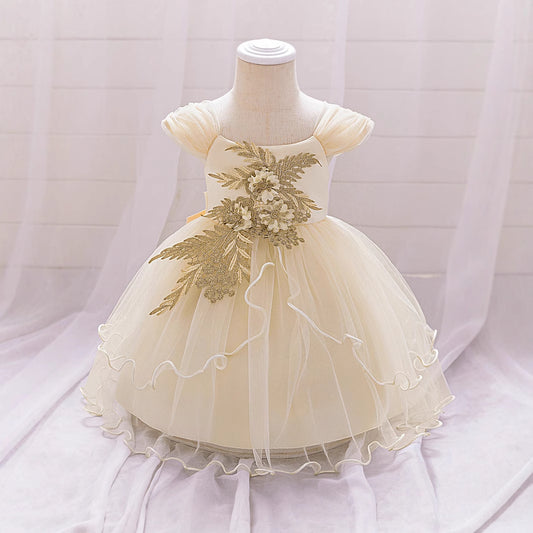 Champagne Puffy Sleeve Ball Gown Dress for Girls