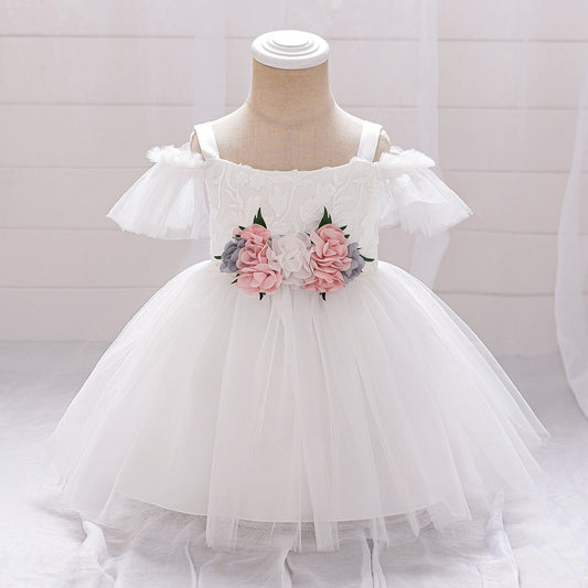 Off-Shoulder Puffy Tulle Flower Girl Dress