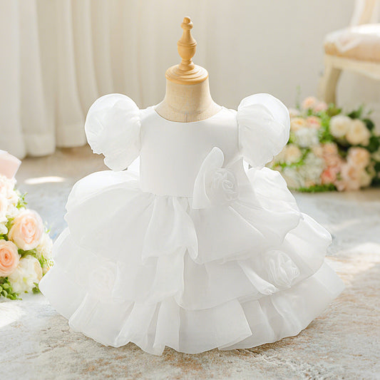 White Tulle Puffy Flower Girl Dress with Bow for Toddlers