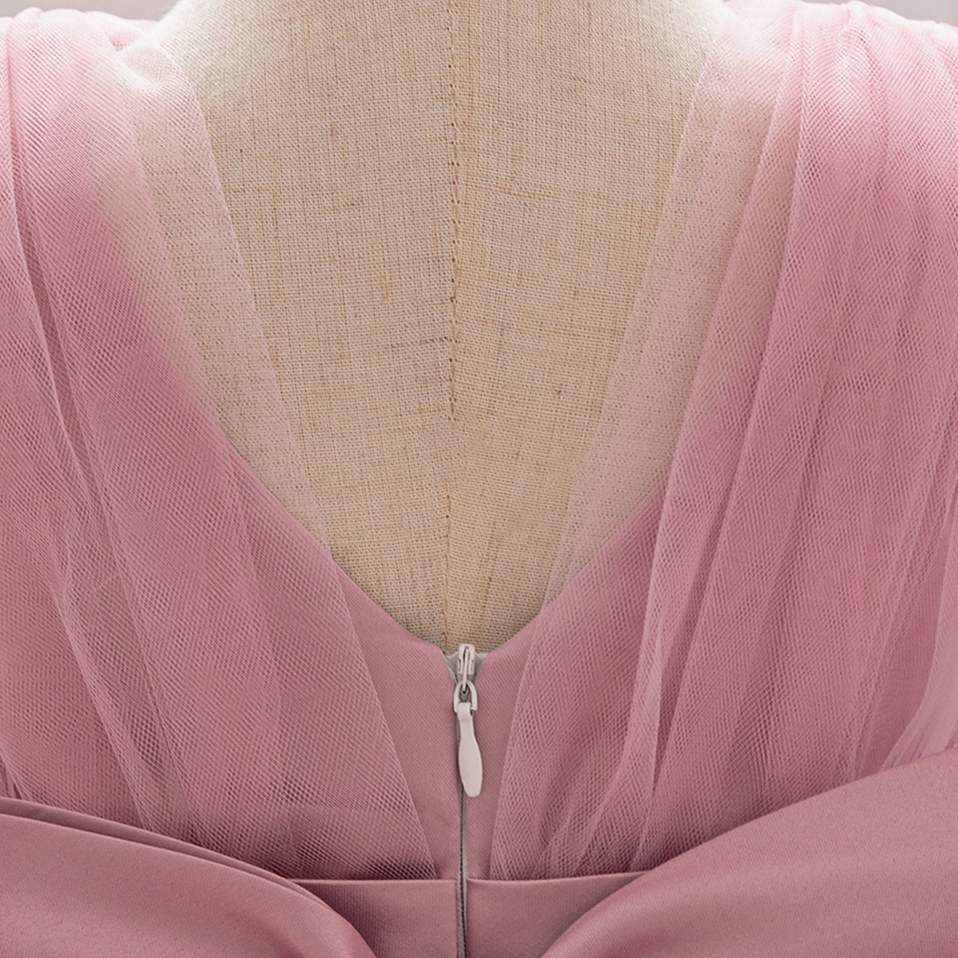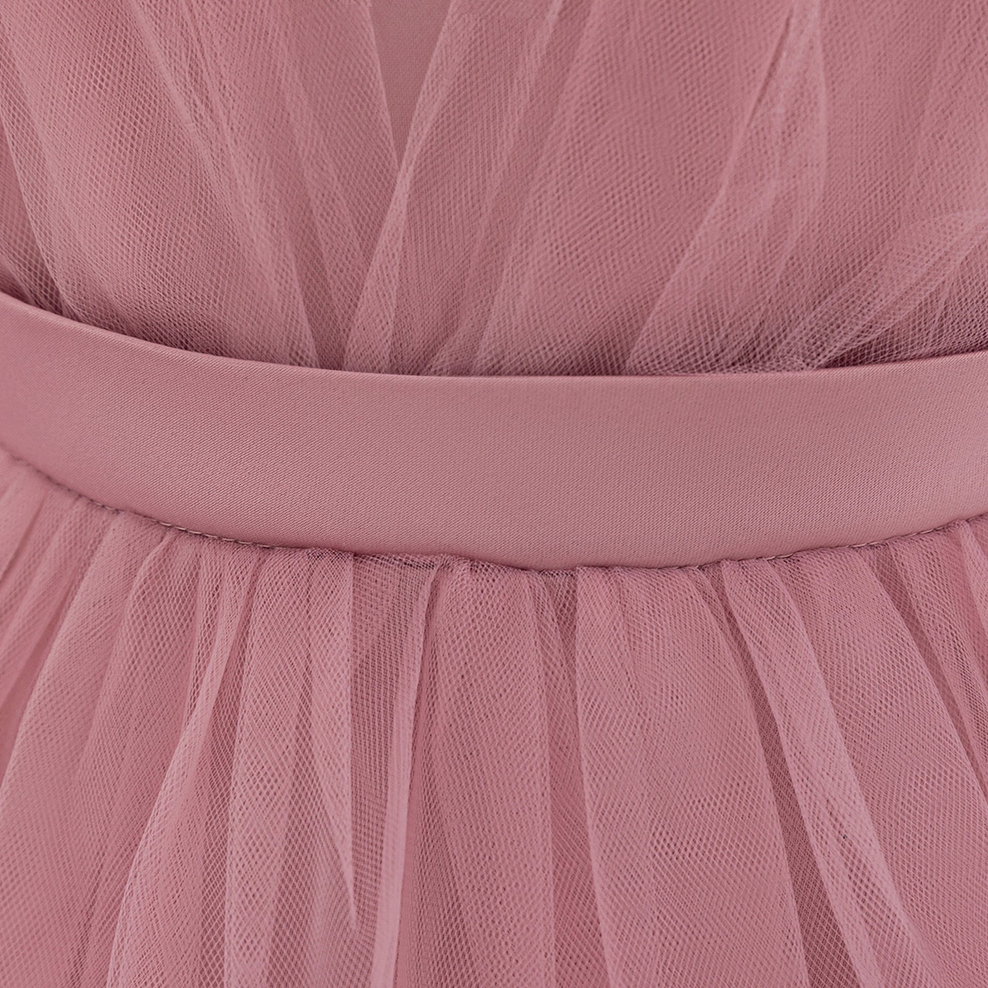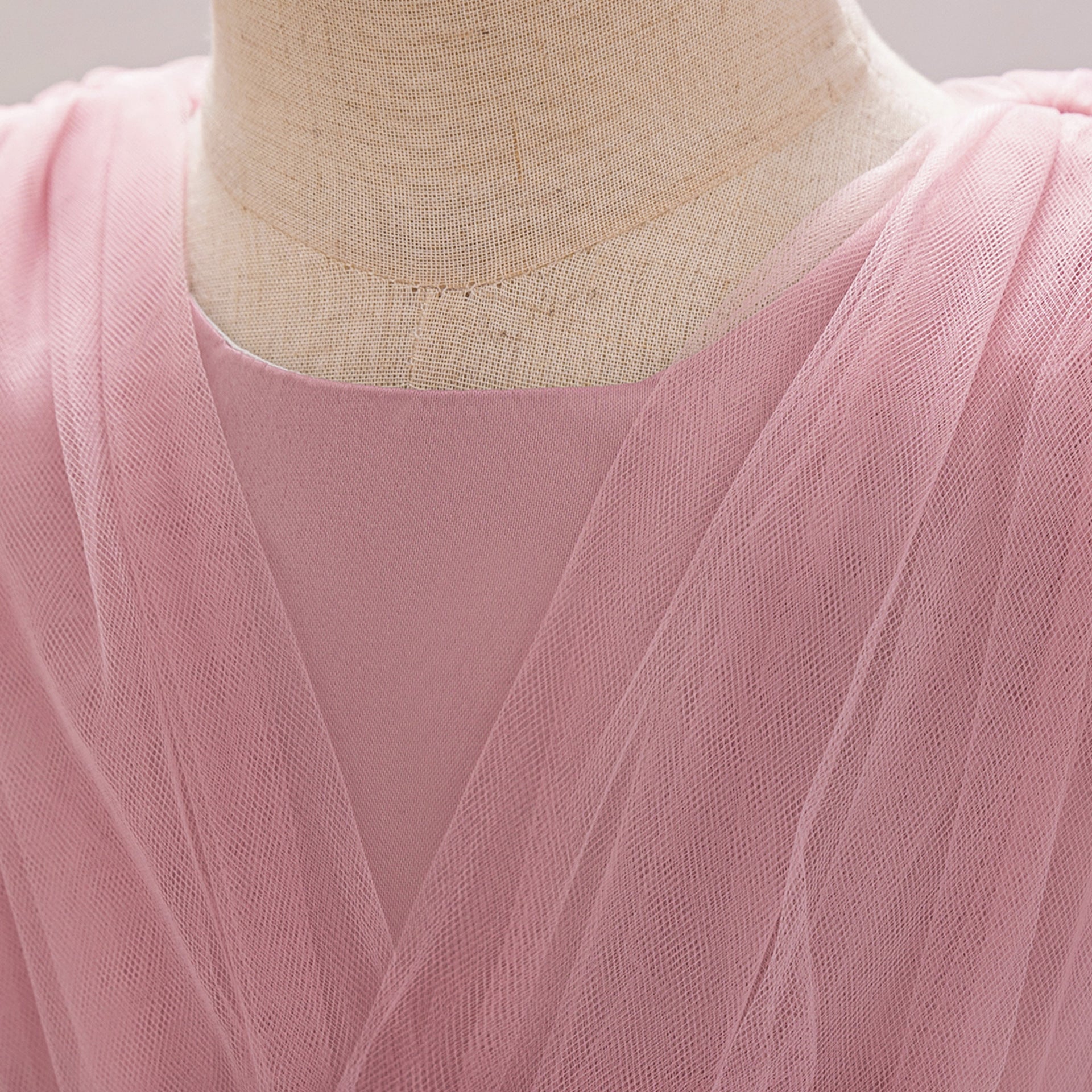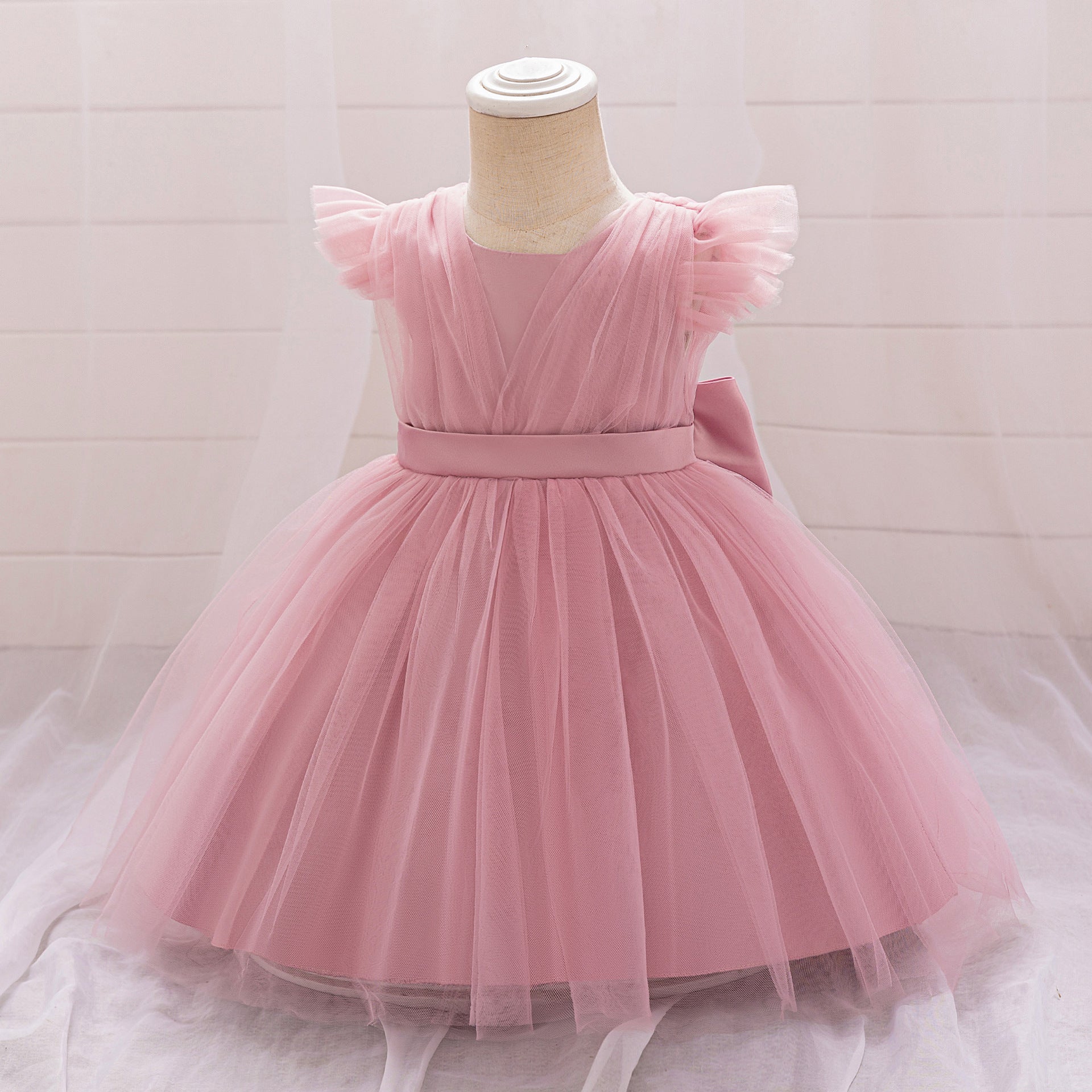 Let your little one sparkle at every special occasion with this adorable A-line tulle dress. Designed with playful small flutter sleeves and a charming round neckline, this tea-length dress features soft, airy layers of tulle for a twirl-worthy silhouette. The dress is beautifully pleated and adorned with a lovely bowknot accent, perfect for making memories at parties, weddings, birthdays, or themed photoshoots. The easy back zipper ensures quick dressing. Ideal for girls aged 9 months to 4 years attending any celebration or festive event.