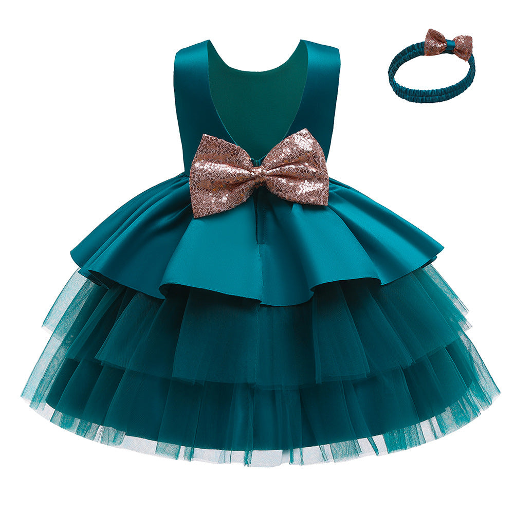 Let your little one shine at any special occasion with this adorable puffy ball gown dress for girls. Featuring a playful tiered tulle skirt and a charming bowknot embellishment at the waist, this tea-length dress is designed with a soft round neckline and comfortable satin bodice. The convenient zipper closure makes dressing up easy, while the elegant silhouette ensures a standout look—perfect for parties, weddings, flower girls, photo shoots, and themed events. Suitable for girls aged 3 to 10 years old, this delightful dress adds a magical touch to every celebration.