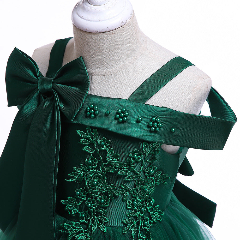 Let your little one shine at any celebration in this adorable puffy ball gown dress! Featuring a charming off-shoulder neckline and delicate bow accents, this tea-length dress is crafted from soft satin and layered mesh for a dreamy princess look. The convenient zipper closure ensures a secure fit, while the pretty floral appliqué and whimsical puffy skirt make it perfect for parties, weddings, photo shoots, festivals, and special occasions. Designed for girls aged 3-10 years, this dress promises comfort and standout style for stylish moments and magical memories!