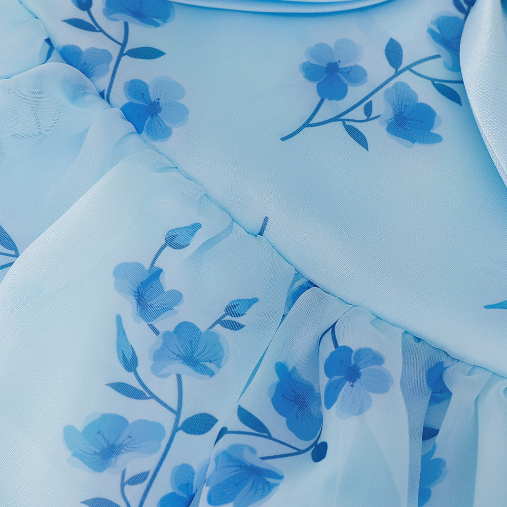 This adorable high-low A-line dress is perfect for little girls aged 9 to 24 months. Crafted from soft and airy tulle in a charming light blue shade, the dress features whimsical puff sleeves, a playful floral print, and a sweet bowknot detail at the waist. The round neckline and convenient zipper closure at the back make dressing easy, while the twirl-ready skirt adds an extra dose of cuteness. Ideal for parties, weddings, flower girl duties, photo shoots, festivals, and themed events, this princess dress ensures your baby girl stands out in every occasion.