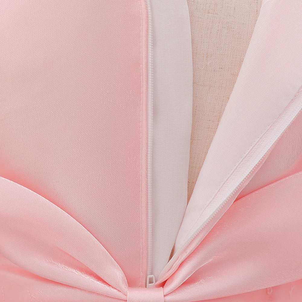 Light Pink Satin A-Line Toddler Party Dress with Bowknot and Ruffles