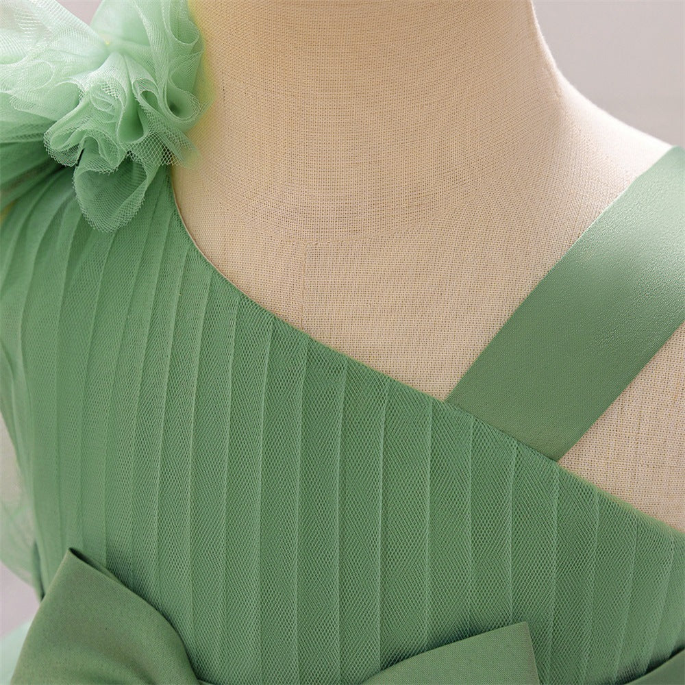 Dress your little one in adorable elegance! This tea-length puff dress features a classic off-shoulder neckline and a full tulle ball gown silhouette, perfect for parties, birthdays, photo shoots, or weddings as a flower girl. Pleated details and a charming bowknot add playfulness to the look, while the secure zipper ensures comfort and convenience. Designed for toddlers aged 9 months to 4 years, this dress brings a delightful touch to every festive occasion.