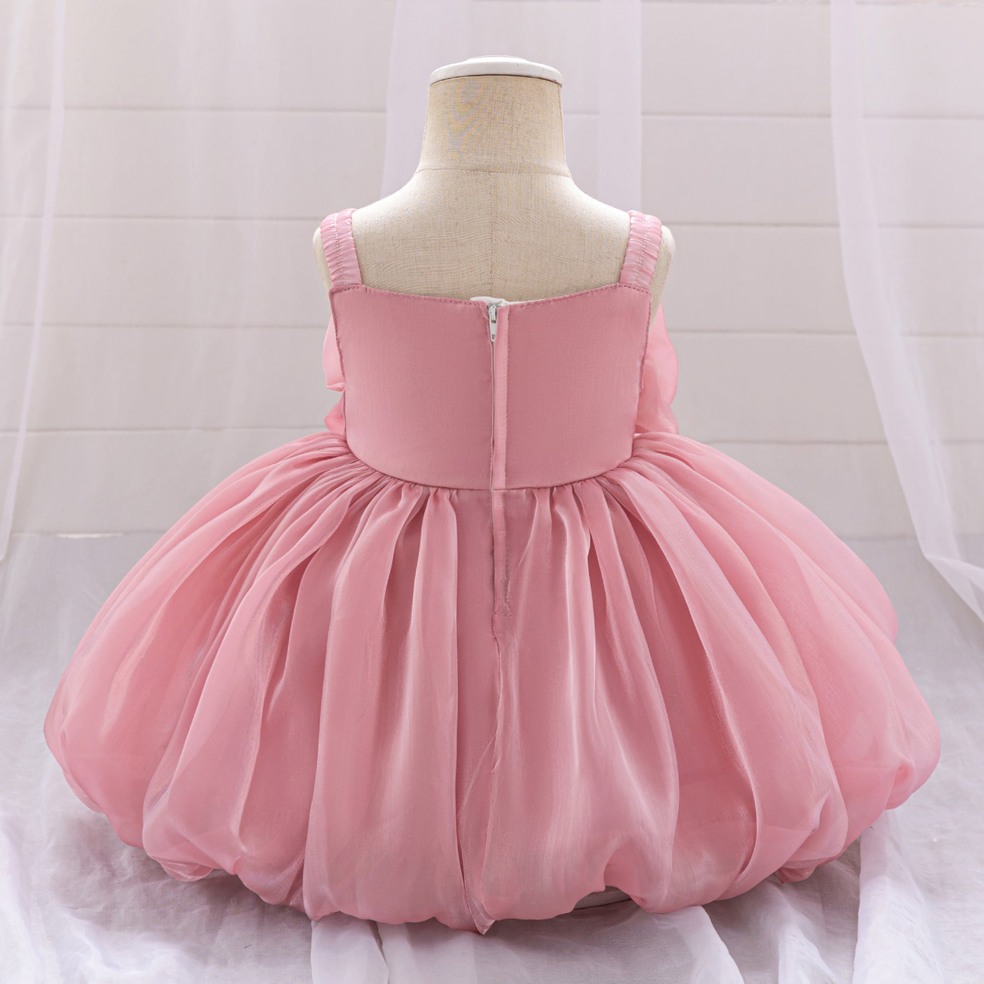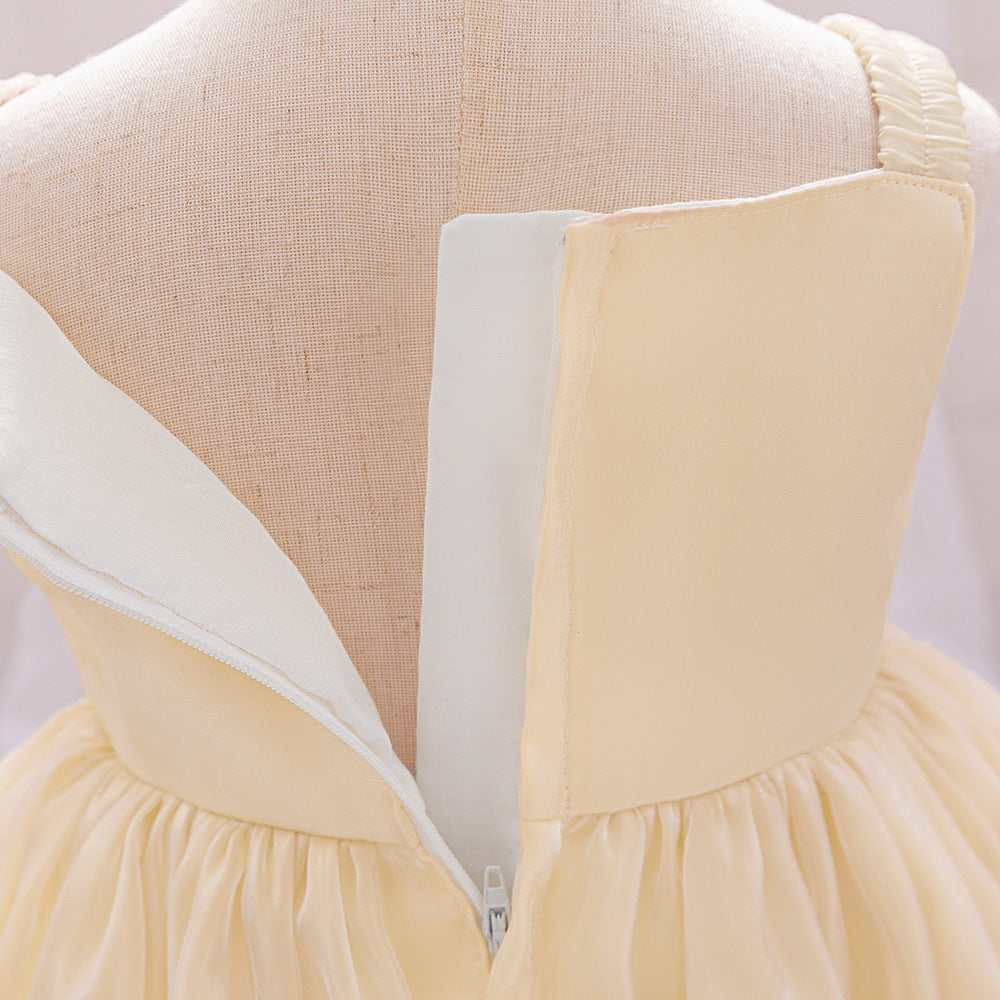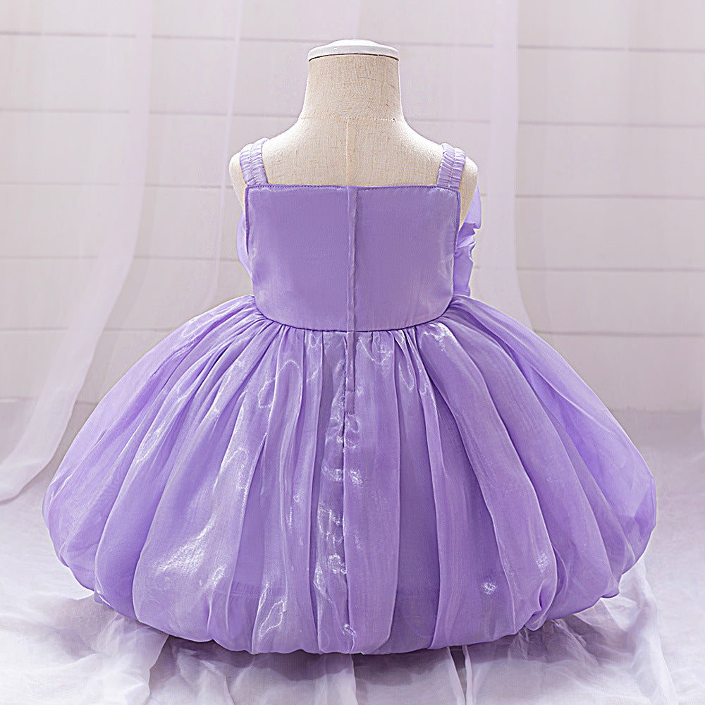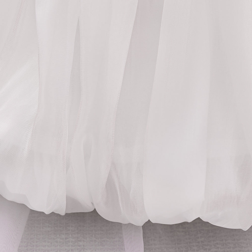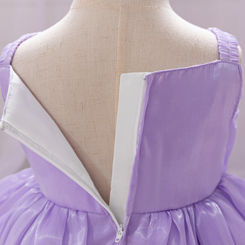 Make every event sparkle with this adorable off-shoulder ball gown for little girls! Crafted from soft, light organza that twirls effortlessly, this puffy dress features a playful tea-length silhouette and a comfortable zipper closure. Designed for ages 9 months to 4 years, it's perfect for birthday parties, flower girl moments, special celebrations, photo shoots, and other festive occasions. Let your little one shine as the star of every moment in this charming princess dress!