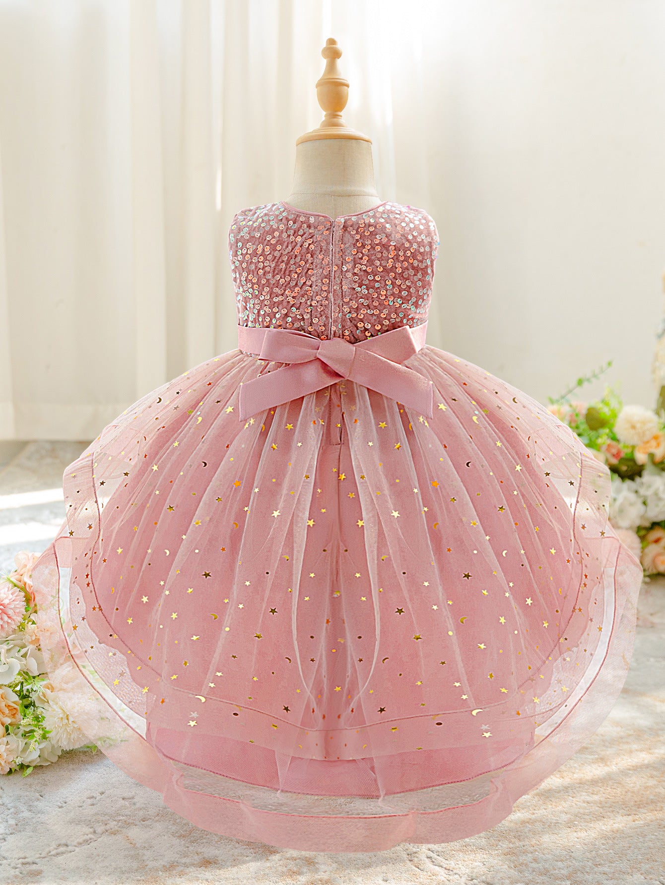 Pink High-Low Sequin Tulle Ball Gown Dress for Girls
