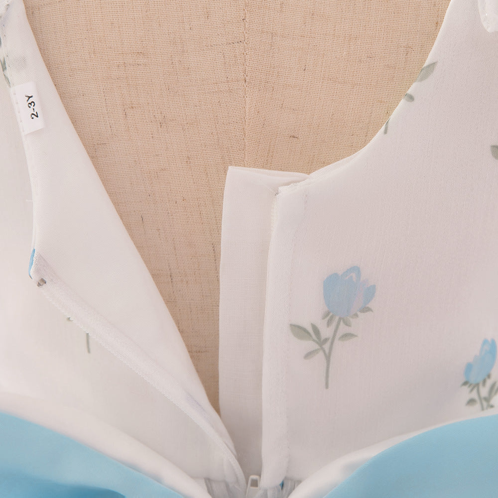 Princess Fairy A-Line Tulle Dress with Bow and Floral Print