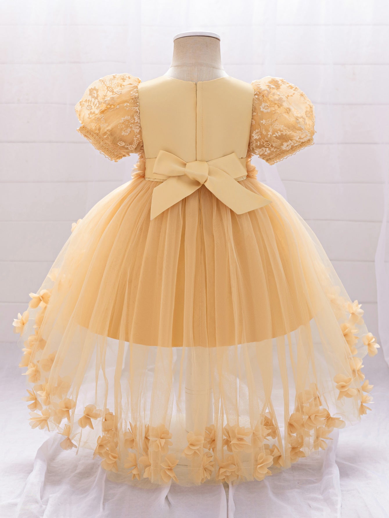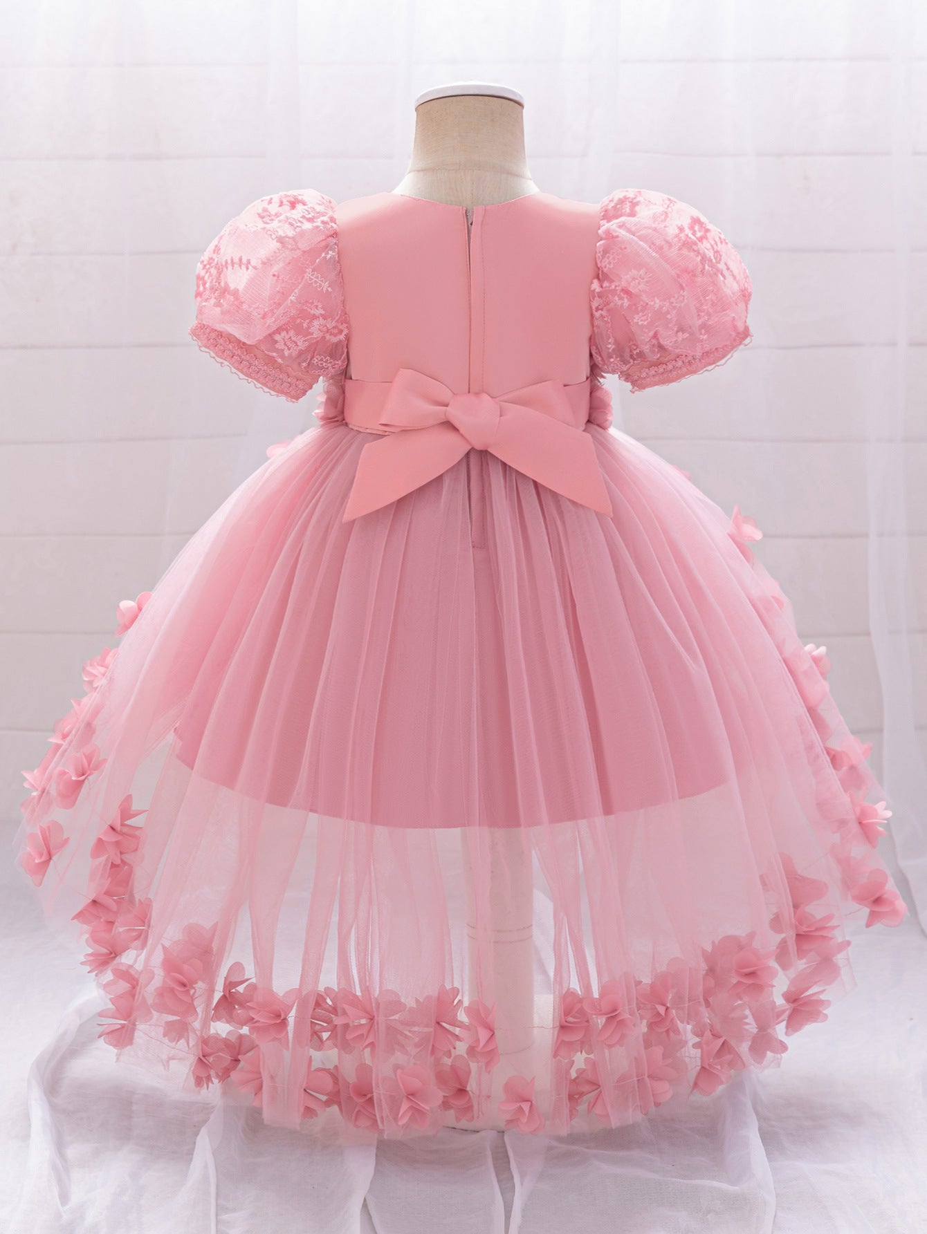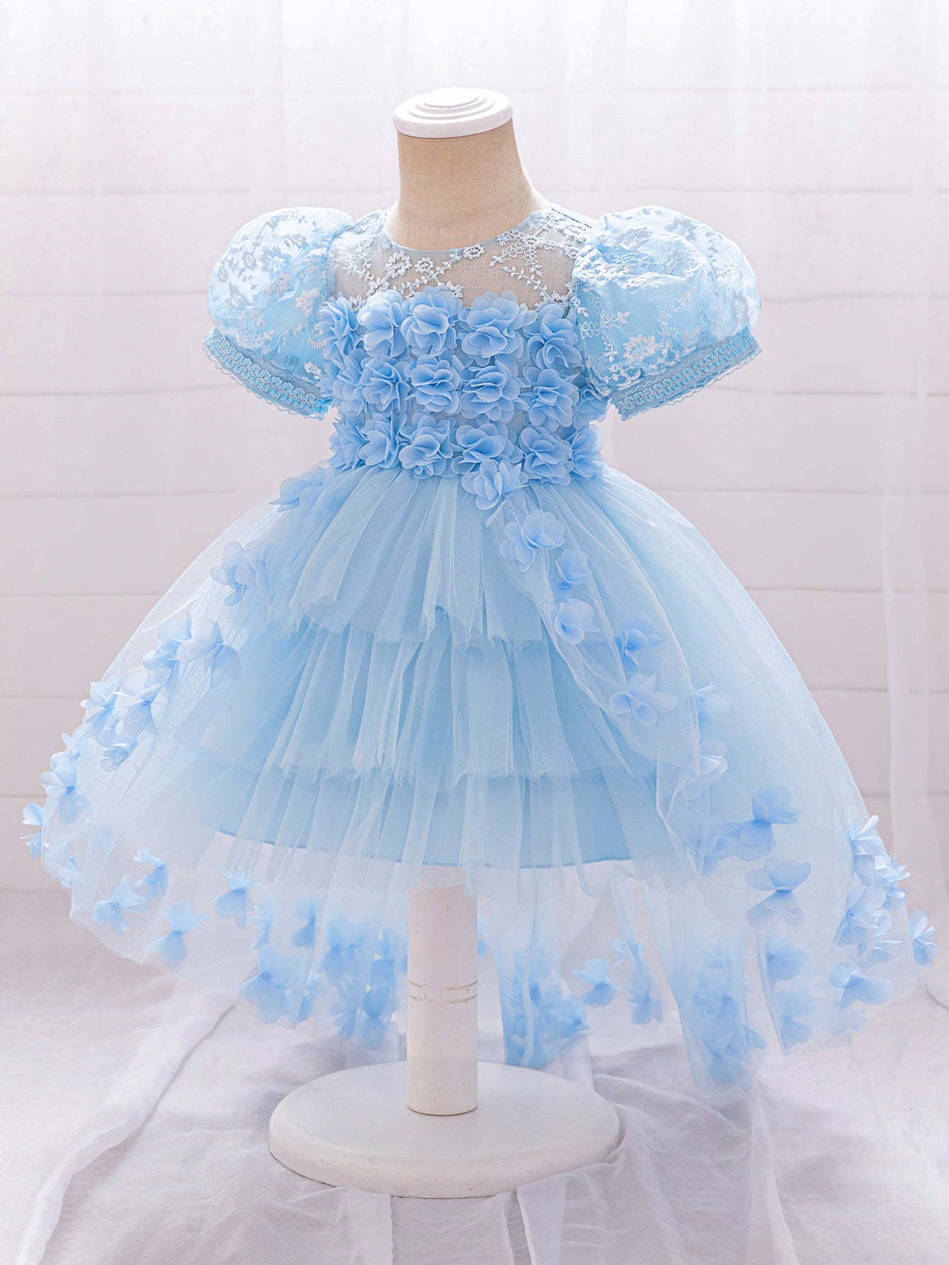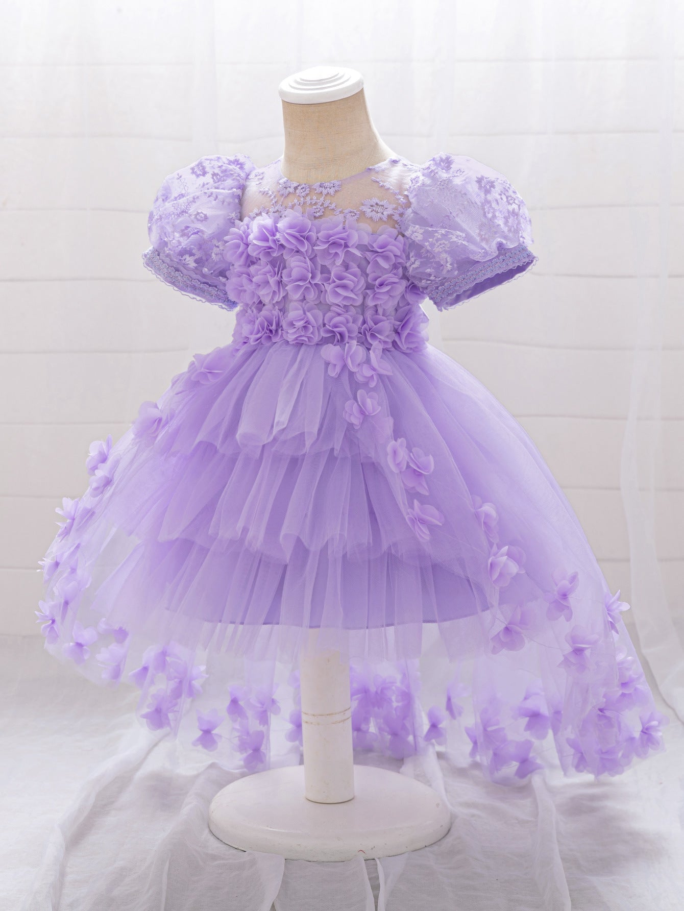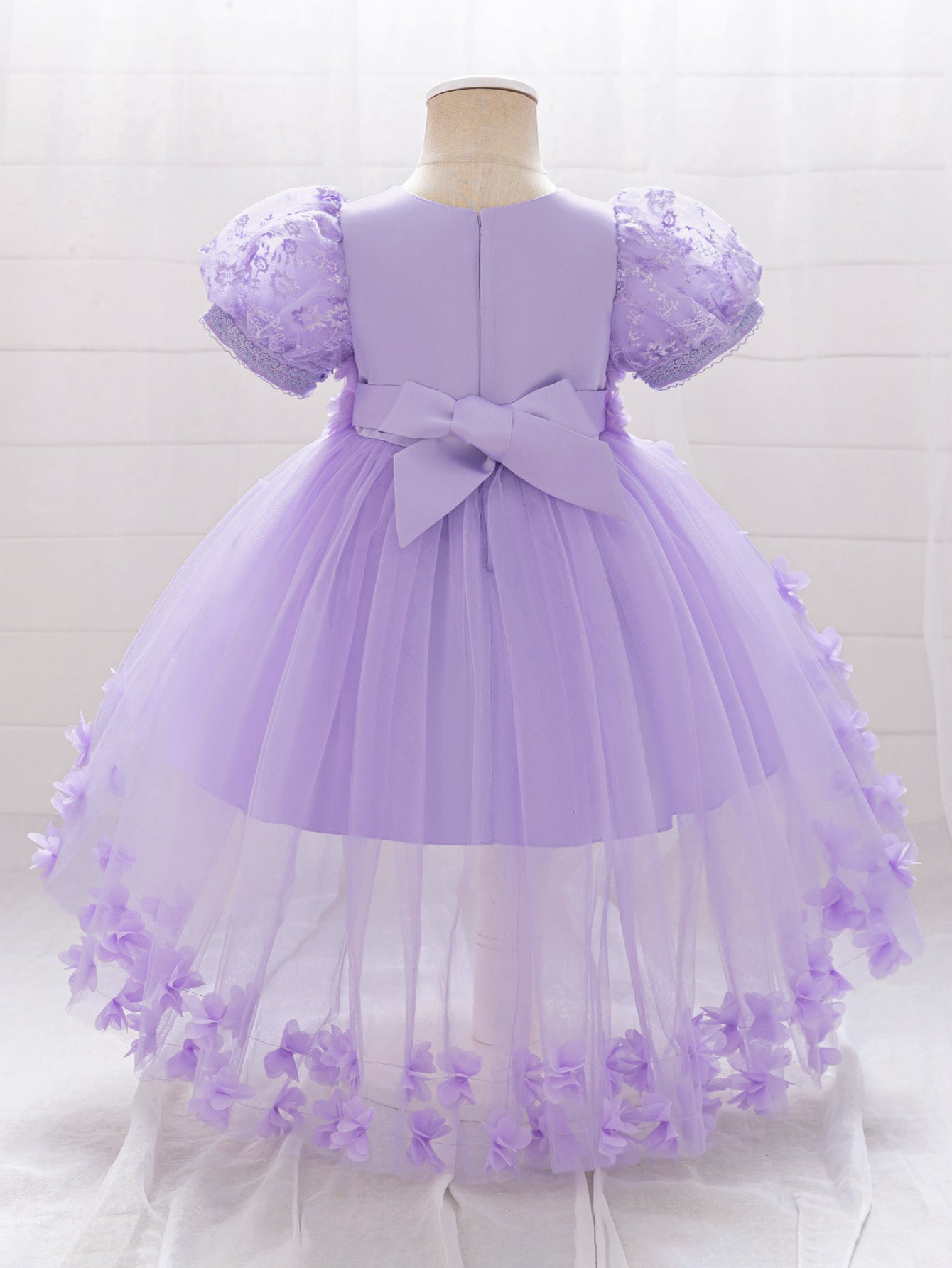 Delight in fairytale elegance with this princess-inspired puffy high-low tulle dress, designed for girls aged 9 months to 4 years. Featuring a soft round neckline and a whimsical ball gown silhouette, this dress pairs comfortable tulle with exquisite appliqué, patchwork accents, and delicate embroidery. A secure zipper closure ensures easy dressing while the dramatic high-low hem creates an eye-catching effect, perfect for twirling. Ideal for parties, weddings, flower girl appearances, photo shoots, festivals, and themed events, this enchanting dress brings a magical touch to every special occasion.