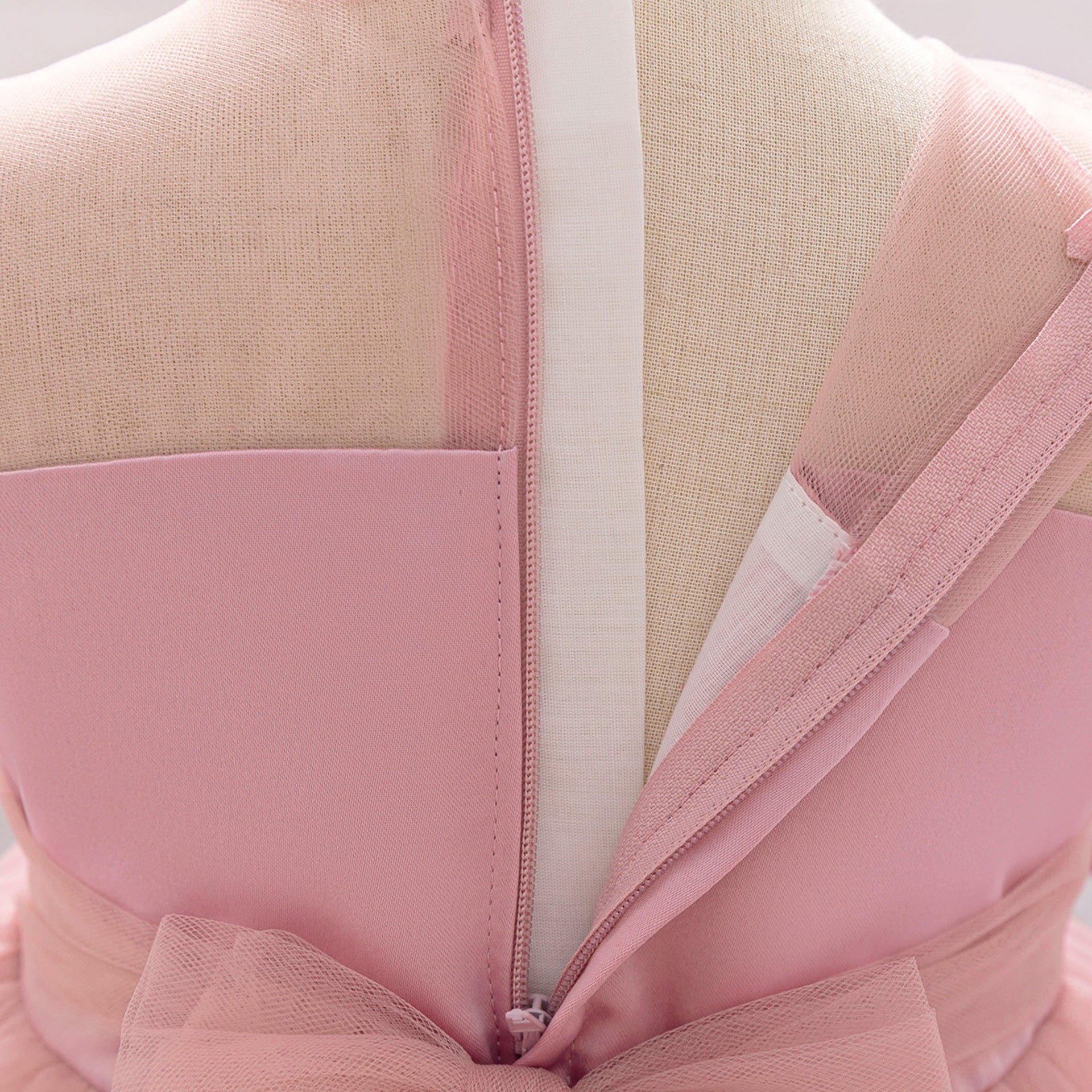 Let your little one shine at every special moment with this adorable ball gown style dress, featuring a round neckline and a puffy tea-length silhouette. Made from soft, lightweight mesh, this dress is designed for comfort and adorable twirls. The back zipper ensures easy dressing, while the charming oversized flower accent adds a touch of fairytale magic. Ideal for parties, weddings, photo shoots, and festive occasions, this dress perfectly suits girls aged 9 months to 4 years. Make every celebration memorable with this dreamy princess dress!