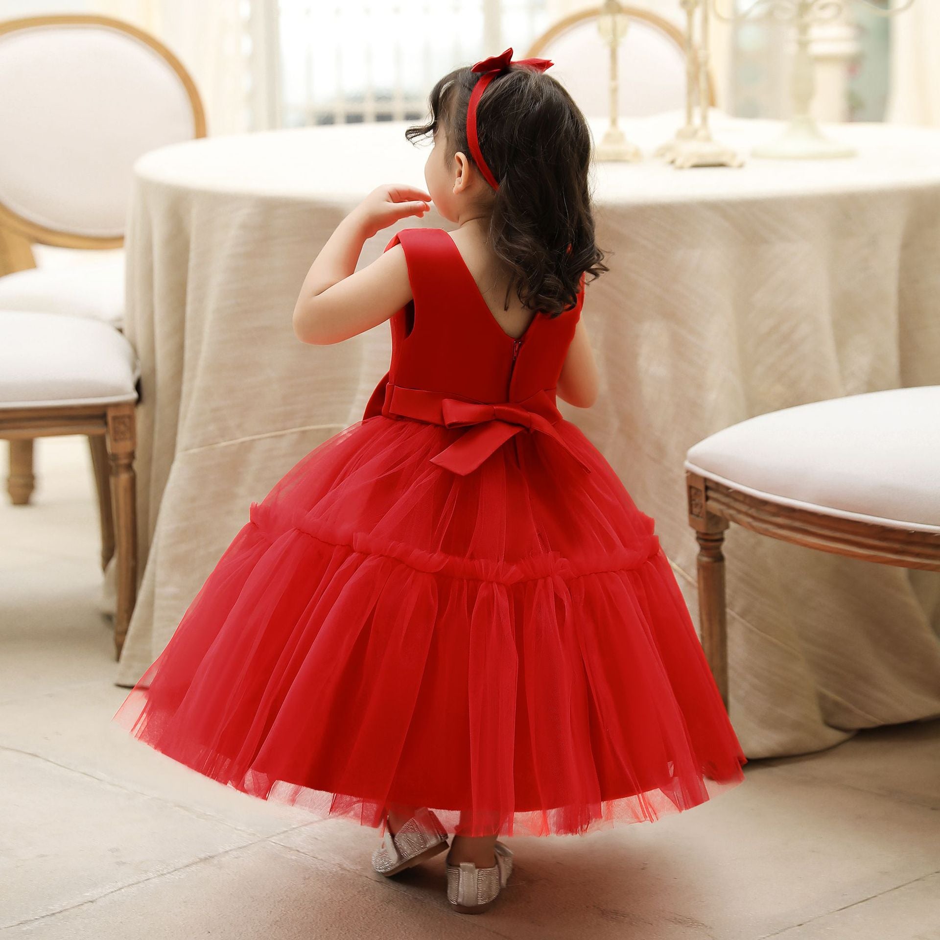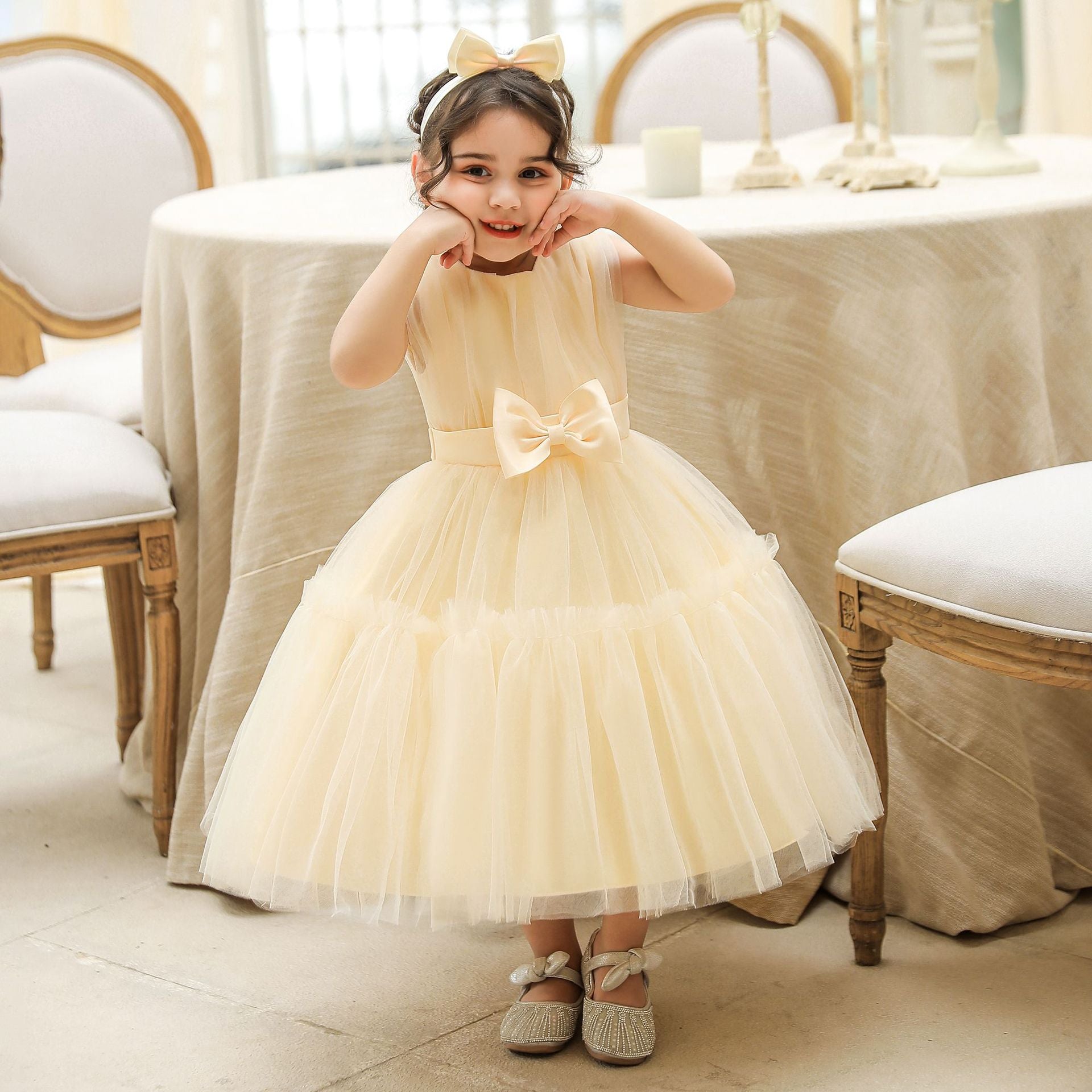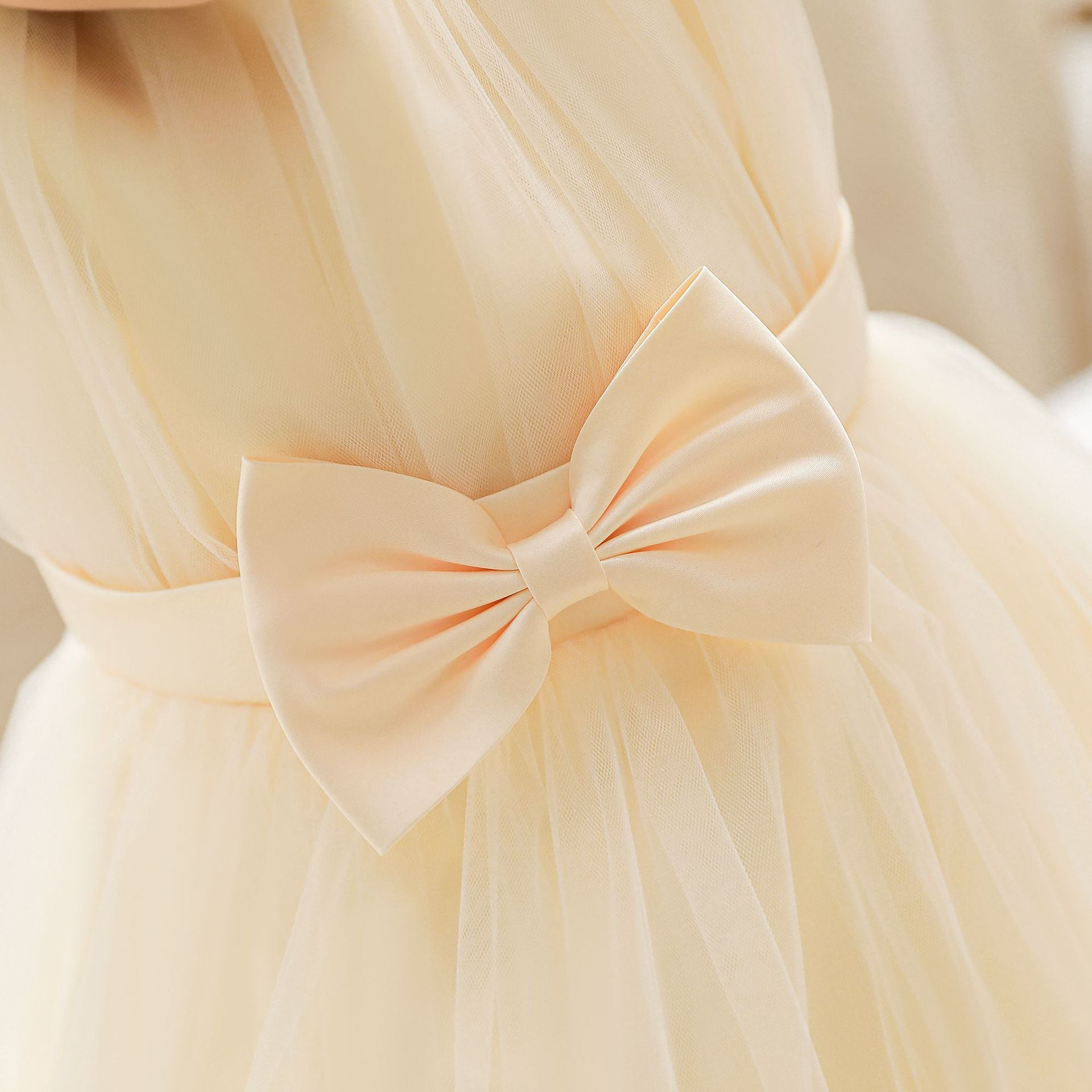 Make every occasion extra special with this charming puffy ball gown-inspired toddler dress. Designed in a stylish tea length and crafted from soft tulle, it features a sweet round neckline and is adorned with an adorable bowknot and playful pleats. The easy zipper closure ensures quick dressing, while the voluminous skirt creates a magical, princess-worthy look. Ideal for birthday parties, weddings as a flower girl, festive events, or memorable photo shoots. Perfect for little girls aged 9 months to 5 years seeking comfort and cuteness.