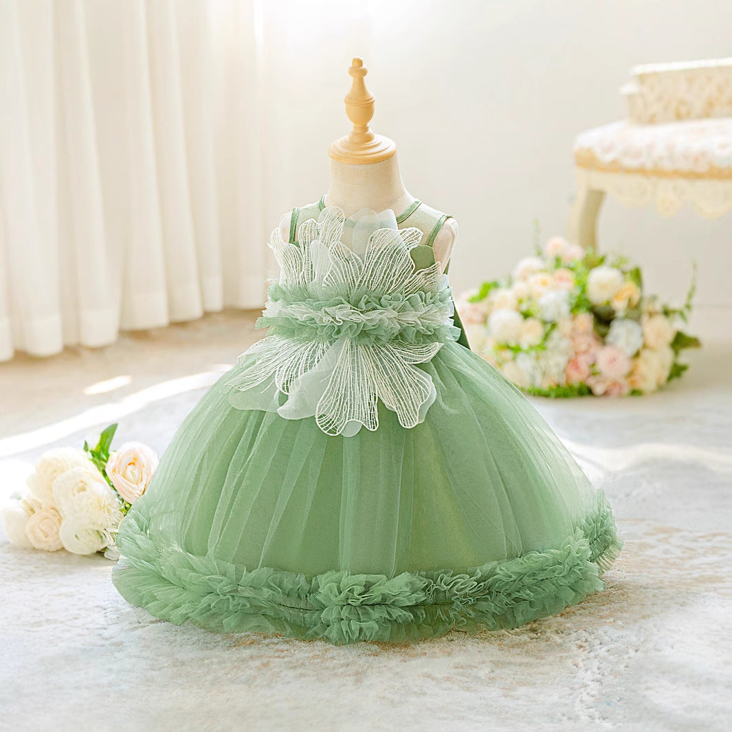 Sage Green Puffy Off-Shoulder Baby Girl Ball Gown Dress