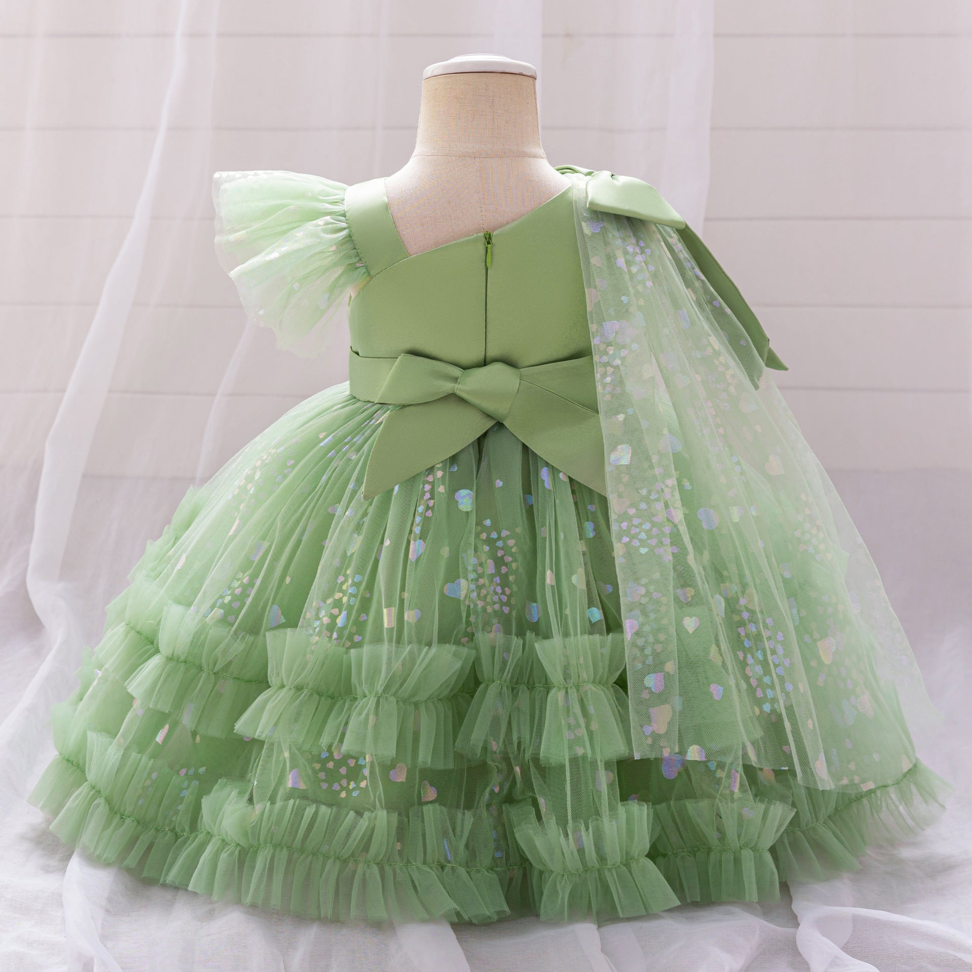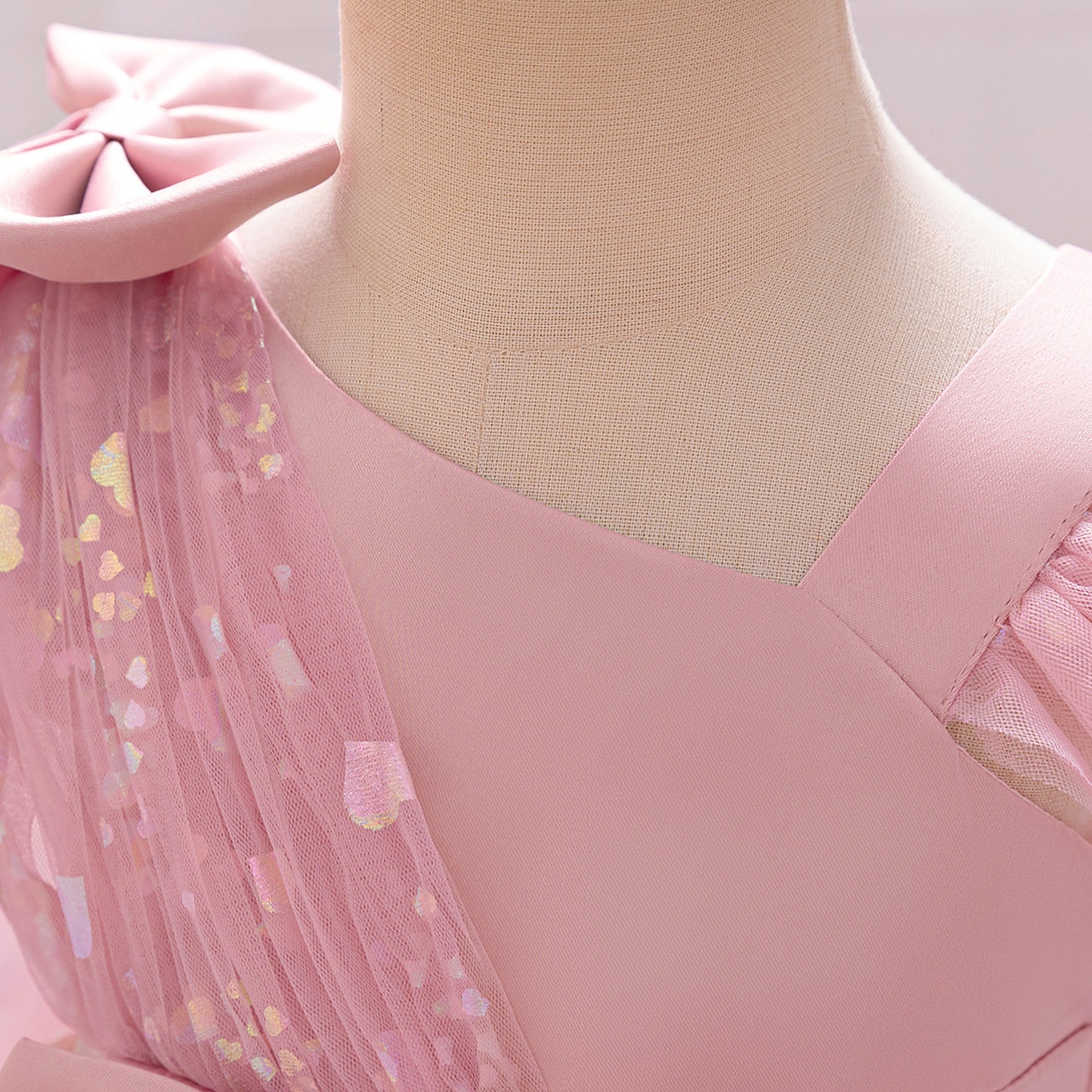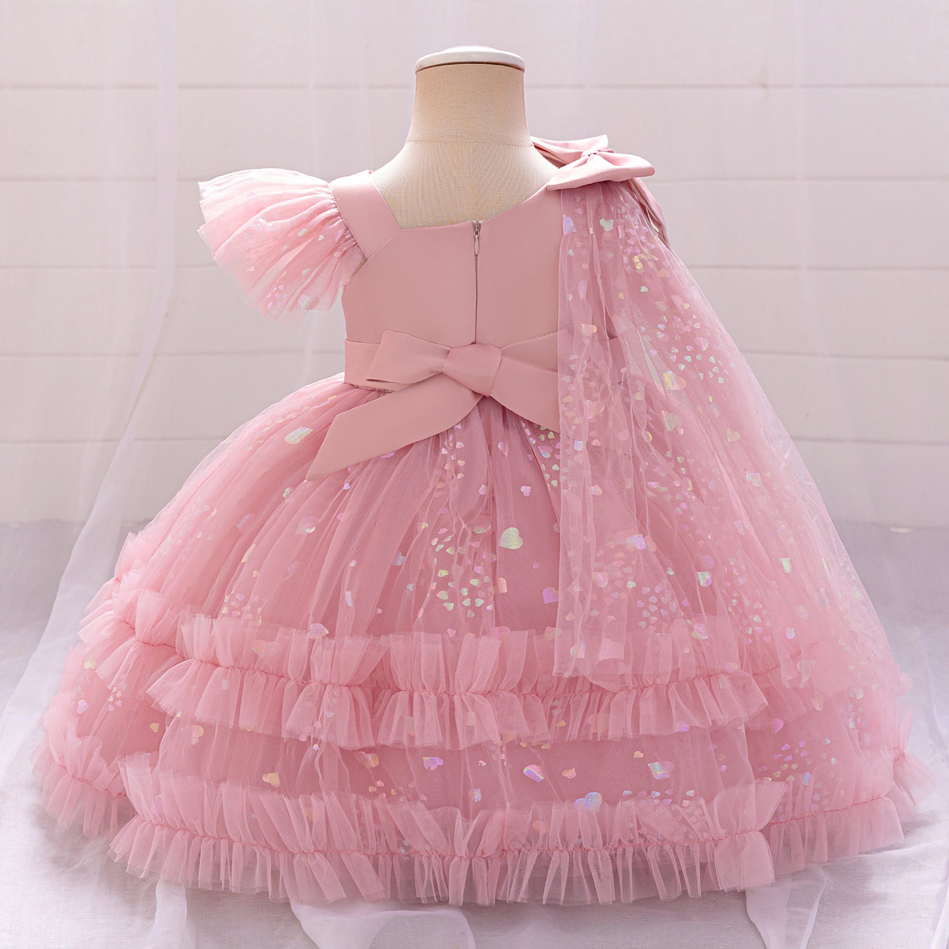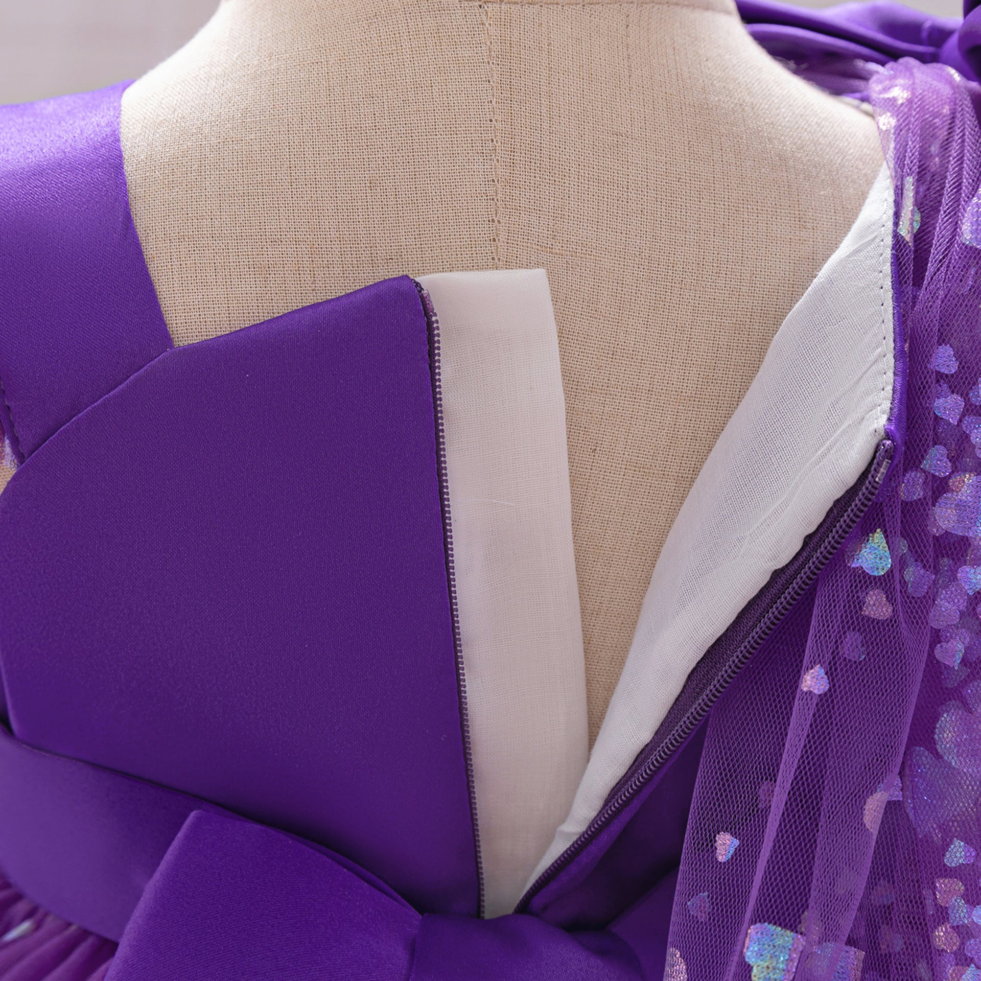 Make every celebration memorable with this adorable tea-length puffy dress, specially designed for little girls aged 9 months to 4 years! Crafted from sparkling sequin fabric and airy tulle, this charming silhouette features a playful bowknot at the shoulder, delicate pleats, and beaded embellishments. The secure zipper closure makes dressing easy, while the whimsical ball gown cut ensures your little one stands out at parties, weddings, photo shoots, and themed events. Perfect for any special occasion where cuteness and comfort matter!